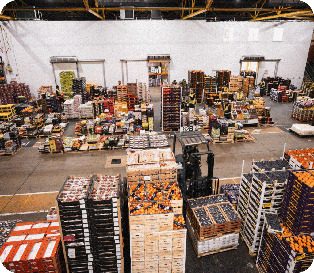 The market’s facilities support this process directly: cold storage rooms, ripening rooms, and palletised racking allow produce to be held at the correct temperature and ripeness stage between purchase and delivery. Security across the site is provided by the Market Constabulary.